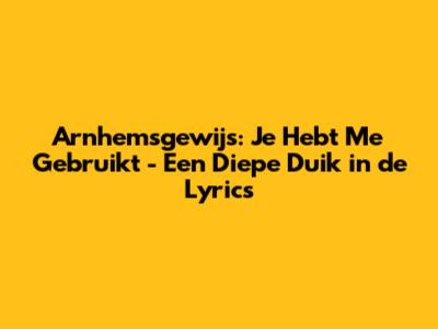 Arnhemsgewijs: Je Hebt Me Gebruikt Lyrics & Betekenis Ontrafeld!